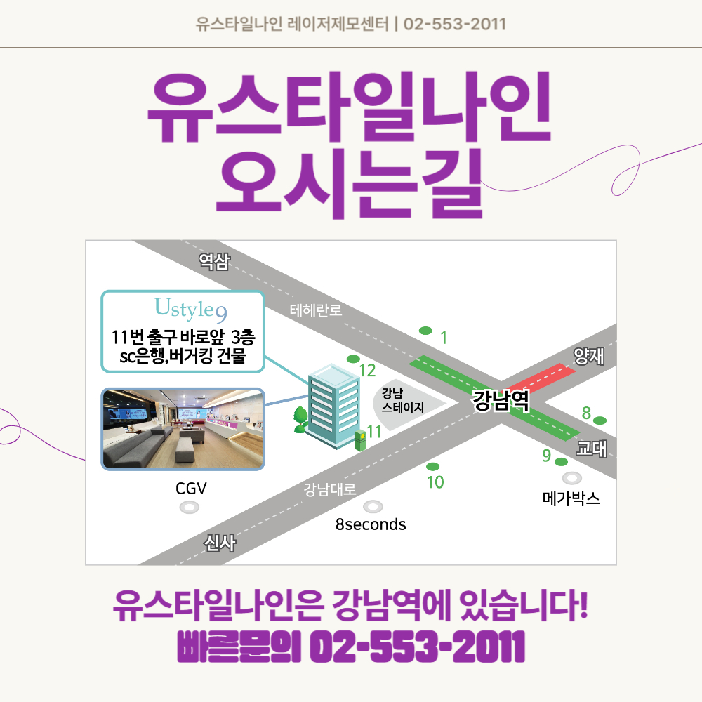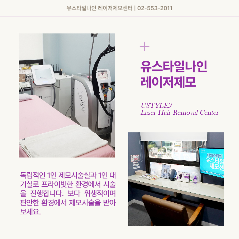 레이저제모만을 전문적으로 하는 곳이라면 이런 부분들을 모두 충족시켜 드릴수있지 않을까 싶어요. 시술 전 갈아입을 옷부터 병원의 면도, 개인의 특성을 고려한 맞춤형 제모가 프라이빗한 1인실에서 진행이 되는데요. 다른 시술없이 오로지 제모만을 하는 곳, 강남역 11번출구 바로 앞에 있습니다.