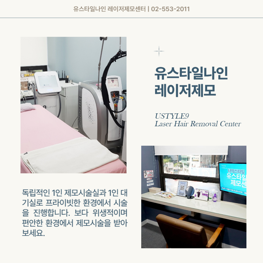 특히나 한곳에서만 여러 침대들을 두어서 공장처럼 진행하는게 아니고, 1인 시술실과 1인 대기실을 통해서 편의성은 물론 위생적인 부분까지 신경을 쓰고 있습니다. 그동안 나와 맞지 않는 방법으로 색소침착이나 흉터, 상처, 인그로운헤어, 모낭염과 같은 문제를 경험하셨다면 의료진의 맞춤형 시술을 통해서 좀 더 깔끔한 제모 관리 받아보실 수 있습니다.