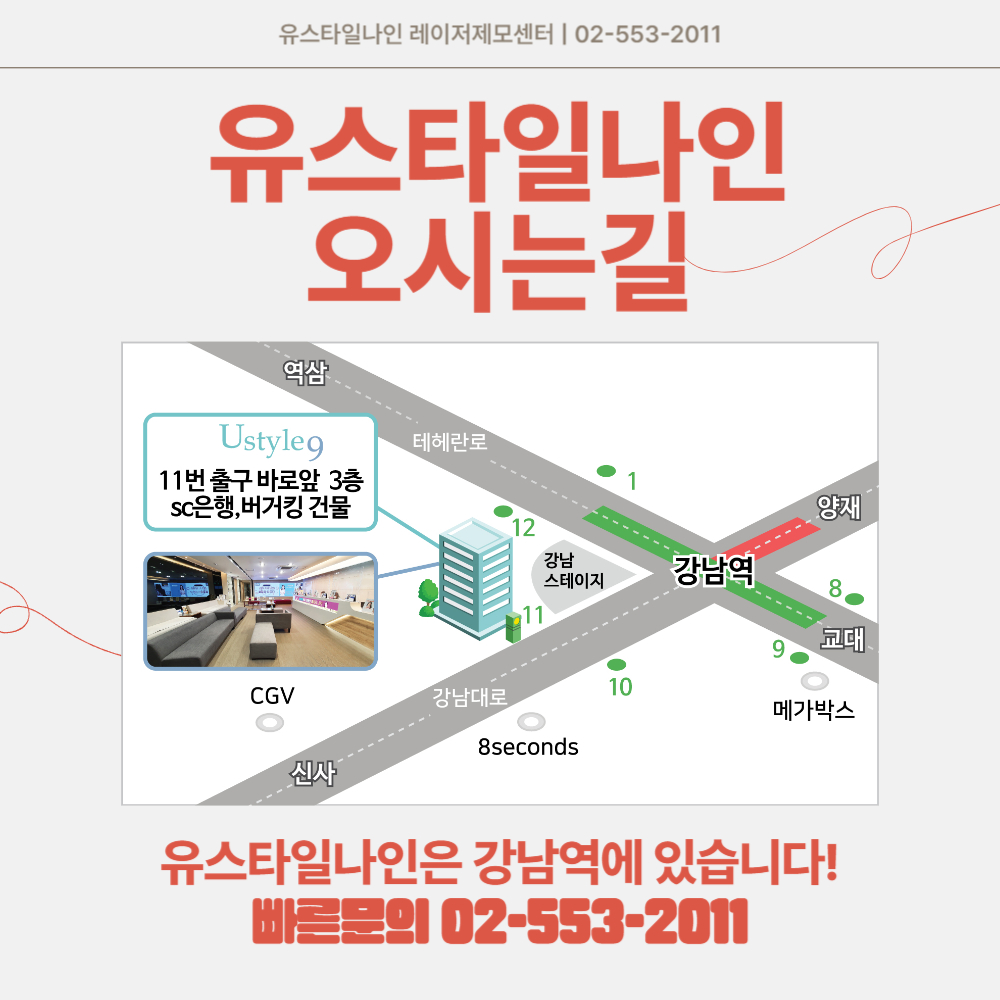 수염/브라질리언/헤어라인/팔/다리 등 전신 56개부위 레이저제모, 강남역 11번출구에서 10m