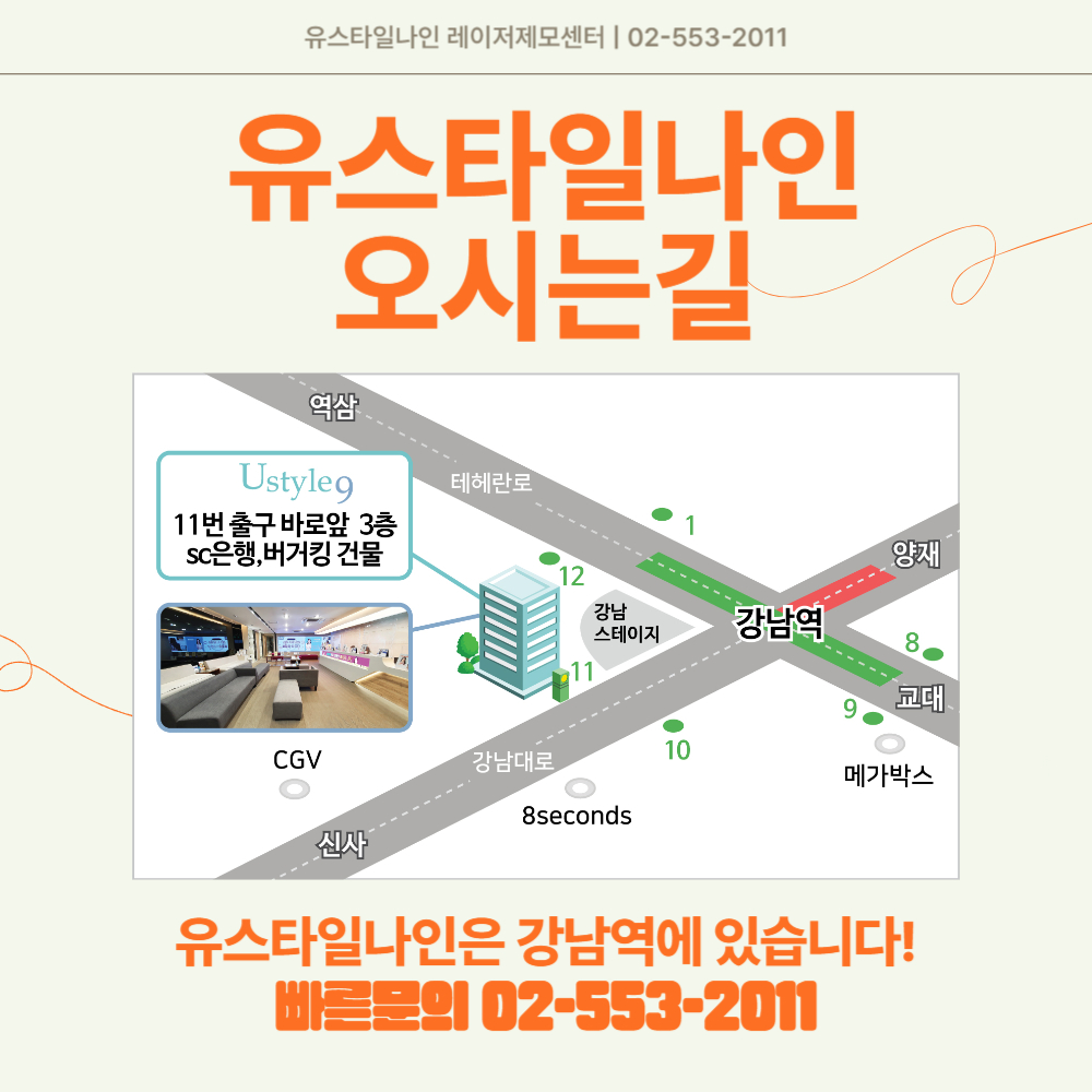 완성도 높은 여자얼굴잔털제거를 위해 이런저런 체크할것들을 준비하고 또 고민하고있었다면 강남역11번출구 바로앞에있는 유스타일나인을 찾아오시면 됩니다. 레이저제모만을 시술하고, 레이저제모만을 위해 특화된곳에서 전문성이 느껴지는 관리를 받아보시기 바랍니다.