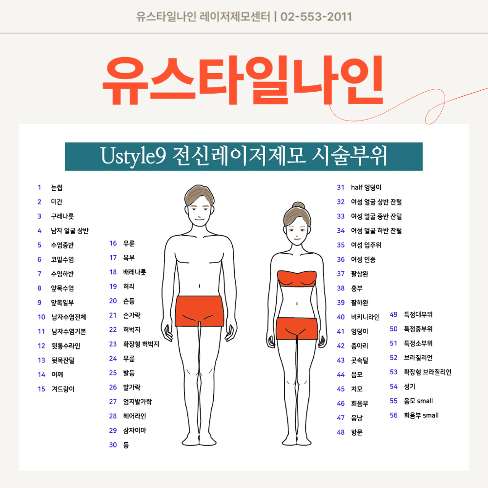 수염/브라질리언/헤어라인/팔/다리 등 전신 56개부위 레이저제모, 강남역 11번출구에서 10m