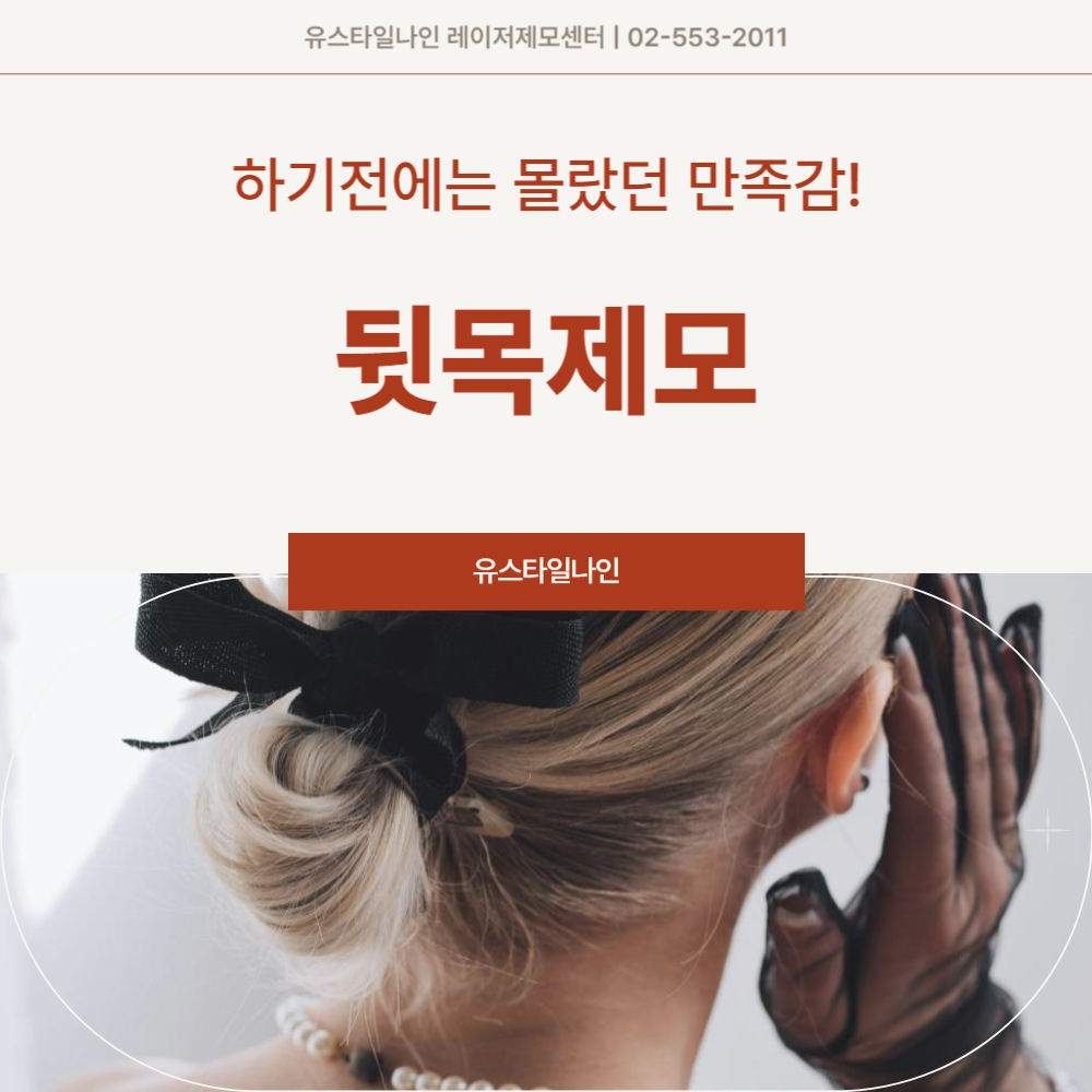 헤어스타일은 자신의 매력과 개성을 드러내기에 가장 적절한 방법중 하나입니다. 다양한 헤어스타일 중 올림머리 혹은 뒷머리를 단정하게 묶는 스타일을 하기 위해선 깨끗하게 뒷목헤어라인제모가 되어있어야 하는데요. 뒷목털이 정리되지 않고 많은경우 목이 짧아보이기도 하고 머리카락으로 인해 피부에 모낭염이나 피부트러블등이 쉽게 생기기도 합니다.