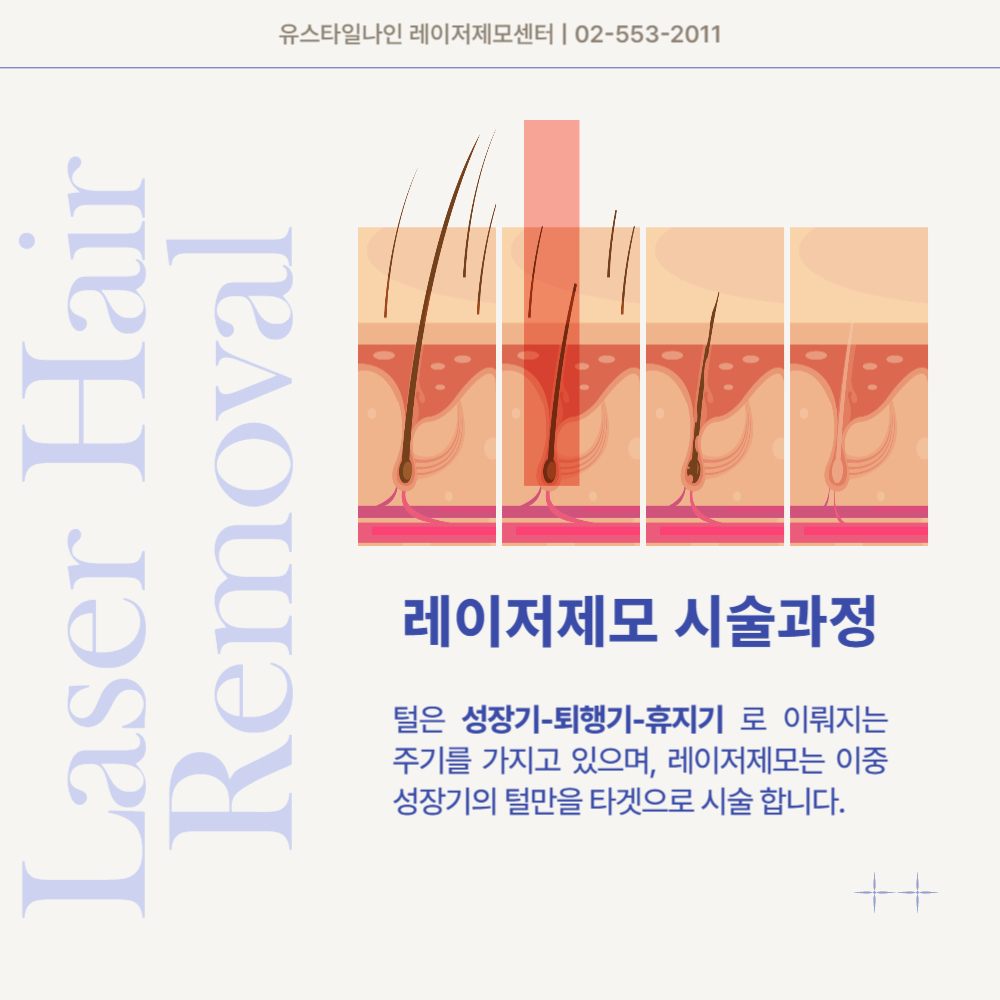 이마레이저제모는 피부안쪽에 자리한 모낭만을 검은색멜라닌 색소와 반응하는 제모레이저를 이용해 제거하는 방법입니다. 털이 자라는 피부조직인 모낭이 사라지게 되니 자연스럽게 영구적인 제모효과를 기대할 수 있게 되는 것이죠.